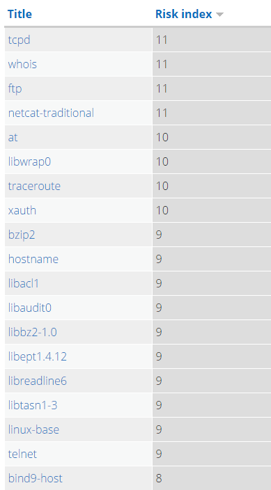 Результаты довольно неожиданные. Например, веб-серверу https присвоен рейтинг всего лишь 8, несмотря на большое количество известных багов, выявленные в последние годы. Дело в том, что сейчас его аудитом занимается большое количество людей, это повлияло на снижение рейтинга риска.
