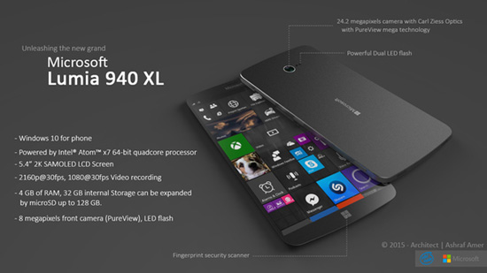 Учитывая традиционный стиль смартфонов Lumia, едва ли Lumia 940 будет похож на такой концепт. Скорее, внешне новинка станет чем-то средним между Lumia 930 и Lumia 1520, да и размер дисплея должен быть порядка 5,7".