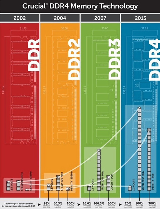 Хорошая новость поступила для тех, кто интересуется быстродействием компьютеров. Маркетинг-менеджер компании Crucial Майкл Морланд заявил, что поставки оперативной памяти стандарта DDR4 для ПК начнутся в III квартале года. Обычно было принято выпускать новый тип памяти только для серверов, и спустя некоторое время для домашних пользователей, однако на сей раз эта традиция окажется нарушена.