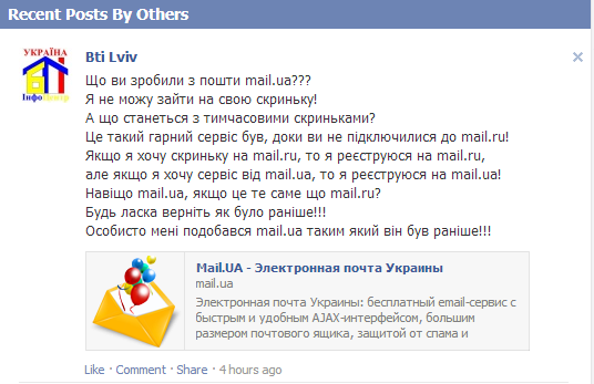 Несмотря на все обещанные плюшки, отечественных юзеров такой добровольно-принудительный переход не порадовал. Форум и facebook- страничка Mail.ua полны гневных отзывов, а пользователи массово мигрируют на другие почтовики.