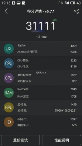 В первые дни лета компания Meizu представила в Китае M2 Note - сиквел довольно успешного 5,5-дюймового смартфона M1 Note, который поразил рынок крайне невысокой ценой. Компания довольно ощутимо поработала над телефоном: изменился дизайн, обновилась аппаратная часть, дебютировала новая версия графической оболочки Flyme 4.5. Сегодня в китайской социальной сети Weibo получил распространение скриншот, на котором запечатлели результаты прохождения смартфоном синтетического теста AnTuTu. К нашему удивлению, M2 Note набрал чуть больше 31 тысячи очков - почти на четверть меньше оригинального M1 Note, который довольно легко преодолевал порог в 40 тысяч.