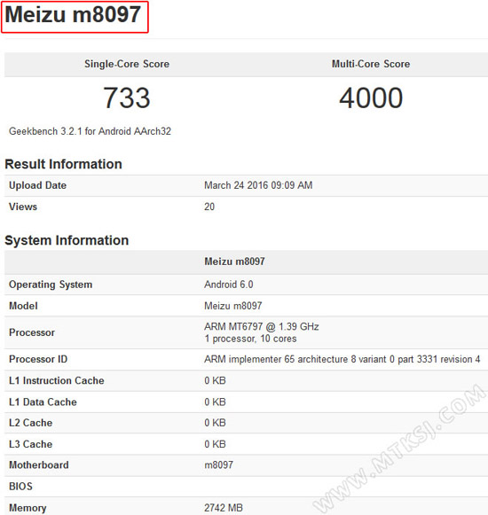 Meizu M8097 с 10-ядерным Helio X20 засветился в бенчмарке GeekBench