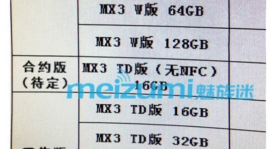 Второго сентября компания Meizu официально представит смартфон MX3. Незадолго до этого в сеть попала информация, согласно которой аппарат будет поставляться с объемом встроенной памяти от 16 до 128 ГБ. Кроме того, новинка получит чип NFC. Базовая модель, согласно предварительным данным, поступит в продажу по цене около $326.