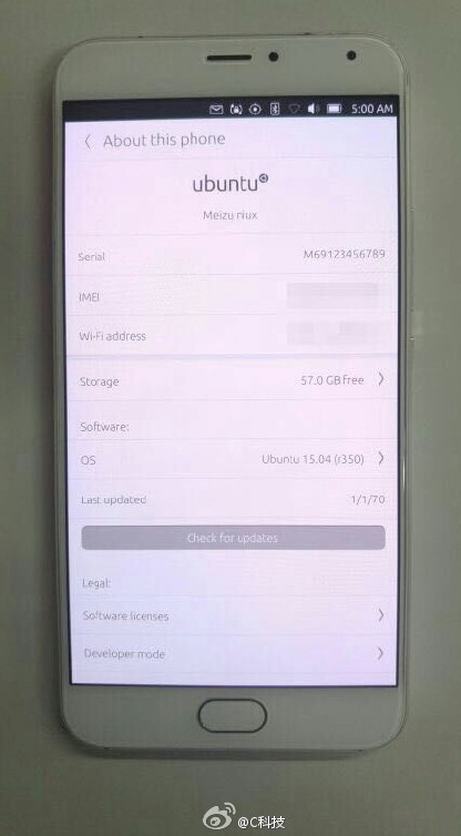 Meizu в своих смартфонах полагается на собственную глубокоинтегрированную в Android оболочку Flyme OS, что не мешает ей временами экспериментировать с другими проектами. Одним из них является Ubuntu Touch, работа с которой началась еще во времена MX3. Реализацию на практике проект получил только с приходом MX4, в качестве специальной версии Ubuntu Edition. Сегодня стало известно, что Meizu тестирует эту прошивку на актуальном флагмане Pro 5. Об этом говорят опубликованные фотографии белой версии на 64 ГБ внутренней памяти, на экране которой характерные для Ubuntu Touch элементы интерфейса. К сожалению, пока непонятно, выйдет ли эта версия на рынок, или будет выпущена прошивка для существующих девайсов (последнее – вряд ли). Подождем, что скажет по этому поводу Meizu.