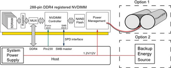 Технология энергонезависимых модулей NVDIMM обсуждалась специалистами, средствами массовой информации и рядовыми читателями неоднократно. Суть её, вкратце, довольно проста: модуль использует обычные чипы памяти DRAM, но оснащён и модулями NAND, а также подсистемой питания на базе суперконденсаторов. В случае сбоя внешнего питания, сохранённая в конденсаторах энергия позволяет переписать данные из DRAM в NAND, что позволяет избежать потери данных и потенциального сбоя ПО, что в серьёзных серверных системах крайне важно.