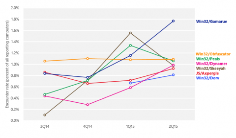 В этом же докладе говорится, что в прошлом году хакеры отдавали предпочтение комплектам эксплоитов (exploit kits) перед другими методами распространения вредоносного кода, что позволяет автоматизировать процесс инфицирования. Самым популярным семейством вредоносного ПО стало Win32/Gamarue, один из крупнейших и старых ботнетов. Также растёт число потенциально нежелательных приложений и фишинговых атак против финансовых организаций.
