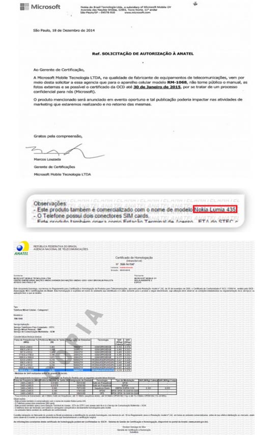 В прошлом месяце мы писали о том, что Microsoft Lumia 435 прошёл сертификацию в FCC, благодаря чему стали известны некоторые спецификации и даже внешний вид устройства. Сегодня упоминание об этом смартфоне было обнаружено в бразильской службе Anatel, аналоге FCC. В документах, сканированные копии которых появились в Сети, сказано, что Anatel не имеет права публиковать какие-либо изображения устройства до 30 января. Очевидно, что эта дата выбрана не случайно: скорее всего, уже в конце января миру будет представлен новый Windows-фон начального уровня от Microsoft.