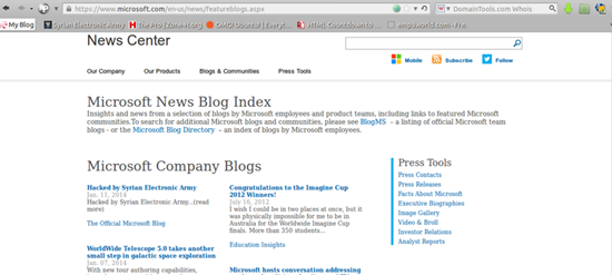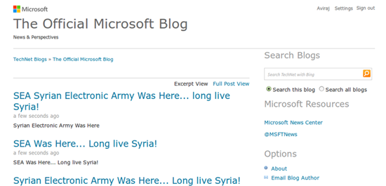 Компания Microsoft в этом году несколько раз подвергалась успешной атаке хакерами из группировки «Сирийская электронная армия». Они взломали твиттер-аккаунты Skype и Xbox, блоги Skype и Microsoft, электронную почту сотрудников Microsoft, а вчера дефейснули блог Office.