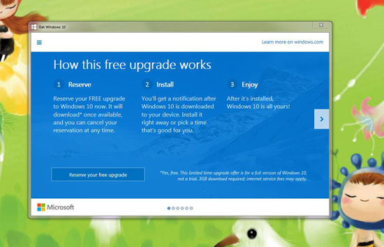 Сейчас Microsoft не оставляет попыток привлечь внимание к «десятке»: по сообщению Oszone, уведомления о доступности Windows 10 на Windows 7 отныне занимают весь экран, хотя в углу имеется кнопка «Х» для закрытия данного окна. После перезагрузки операционной системы уведомление появляется снова.