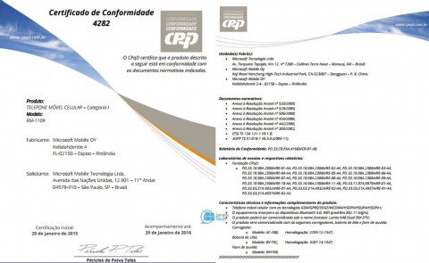 Компания Microsoft планирует выпустить новый доступный смартфон Lumia 640. Устройство недавно получило одобрение в Бразилии, где модель была замечена под названием RM-1109. Сертификат соответствия не только раскрыл кодовое имя новинки, но и некоторые характеристики. Lumia 640 предложит пользователям работу в стандартах HSDPA+, Wi-Fi и Bluetooth 4.0, возможность использования двух SIM-карт, поддержку цифрового телевидения и батарею ёмкостью 2 500 мАч. Пока неизвестно, будет ли смартфон выпущен уже с Windows 10 или на нём будет текущая актуальная версия Windows Phone 8.1.