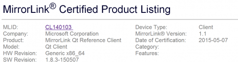 К сожалению, каких-либо конкретных заявлений касательно технологии сделано не было. Впрочем, все наработки из Windows Phone 7 и 8 наверняка будут перенесены в грядущую Windows 10. К тому же Microsoft не так давно зарегистрировала сертификат на официальном сайте MirrorLink, что говорит о неугасающей заинтересованности редмондовской корпорации в данном стандарте.