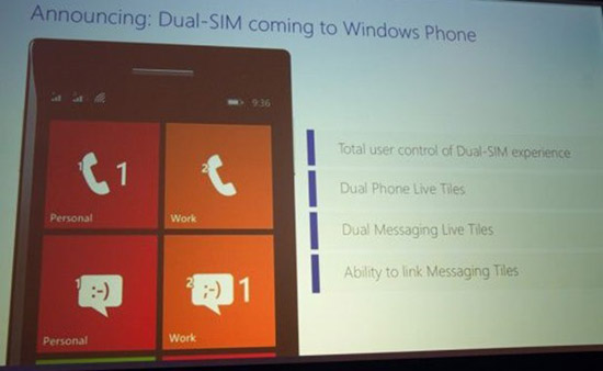 В Windows Phone 8.1 появится поддержка двухсимочных смартфонов — для каждой SIM-карты будет своя плитка для звонков и своя для сообщений.