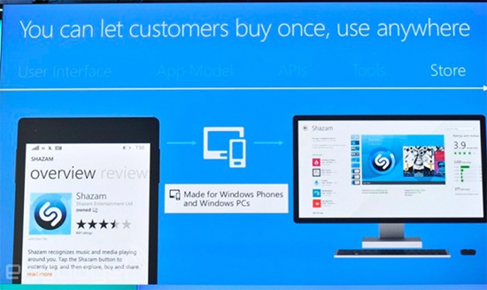 «Речь идёт об одной операционной системе для всех размеров экранов, — отметил он во время отчётной конференции с аналитиками. — Мы превратим следующую версию Windows из трёх операционных систем в одну универсальную ОС для устройств с экранами любых размеров. Ранее у нас было множество команд, работающих над разными версиями Windows. Теперь у нас одна команда, которая трудится над общей архитектурой. Это позволяет нам добиться масштабируемости, создавать универсальные Windows-приложения».