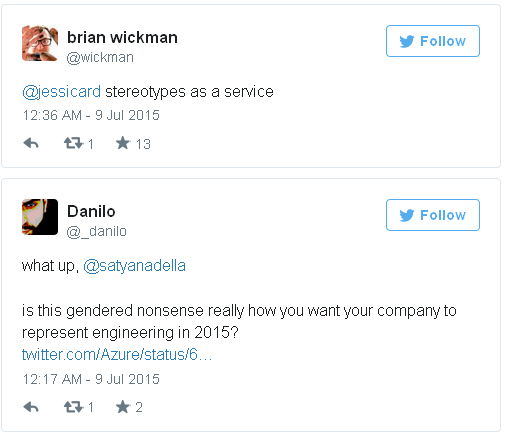 В Twitter возмутились тем, как корпорация «продвигает стереотипные представления о программистах». Изображение высмеяли за безальтернативное отражение реальности, в котором среди разработчиков нет места не только женщинам, но и тем, кто гладко выбрит.