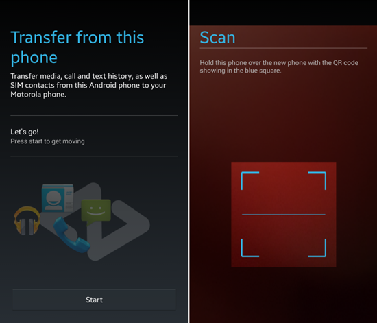 В случае перехода на смартфон Motorola с устройства другого производителя приложение переносит хранящийся в SIM-карте список контактов, историю звонков, SMS, фотографии и видео. Приложение нужно установить на оба смартфона: и на тот, с которого производится переход, и на Motorola.