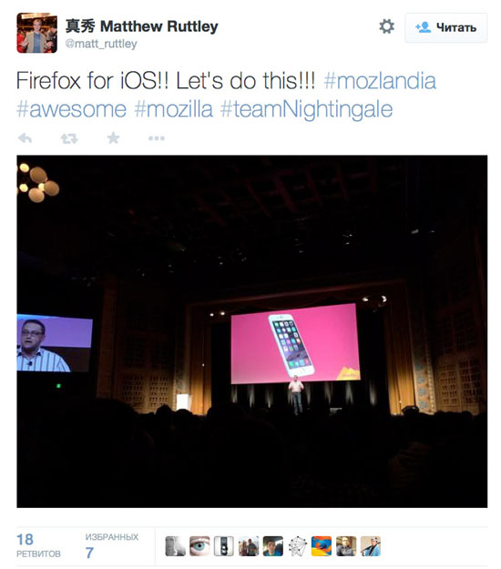 «Это нужно для наших пользователей, поэтому мы намерены выпустить Firefox для iOS», – написал сотрудник Mozilla, сопроводив сообщение хештегом #mozlandia.