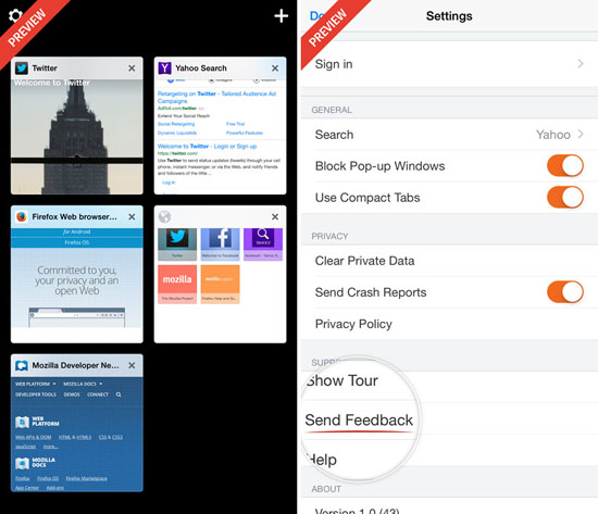 Данная версия умеет работать на iOS 8 и предлагает широкий набор функций: «умный» поиск, синхронизацию открытых вкладок и истории с настольной версией программы, интуитивные вкладки, удобный раздел с избранным. Мобильный Firefox представлен пока только в новозеландском отделении App Store.