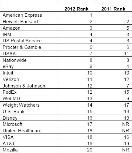 Социологический опрос среди более 100 тыс. человек провёл Ponemon Institute. Компания Mozilla победила в номинации Internet & Social Media (Интернет и социальные медиа). Огорчает только тот факт, что сама индустрия «Интернет и социальные медиа» расположилась на последнем месте в списке 25-ти отраслей бизнеса по уровню доверия потребителей. Кстати, индустрия «Технологии и программное обеспечение» в этом списке на 6-м месте, и в этом секторе по уровню доверия победили компании Hewlett-Packard (1-е место), IBM (2-е место) и Microsoft (3-е место). В секторе электронной коммерции наибольшее доверие пользователей вызывают Amazon и eBay.