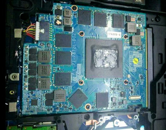 Снимок открывает большинство подробностей конструкции нового мобильного решения NVIDIA. Да, оно выполнено в формате MXM и установлено в соответствующий разъём, однако, судя по всему, спецификации слота, подразумевающие подачу до 100 ватт энергии, она превзошла, так что используется дополнительный разъём питания (верхний левый угол). Система питания выполнена по схеме «4 + 2», имеется разъём для подключения шлейфа SLI (нижний левый угол). Несмотря на формат MXM, GeForce GTX 1070 Mobile — вещь в себе. Вряд ли её удастся адаптировать к какому-нибудь ноутбуку, где раньше был установлен менее производительный графический модуль в этом формате. Потребуется не только дополнительное питание, но и серьёзное охлаждение. Похоже, в ряде случаев GeForce GTX 1070 Mobile будет просто интегрироваться производителями в состав системной платы ноутбука.