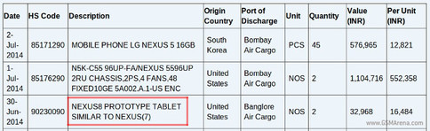 Очередное упоминание нового планшета линейки Nexus было замечено на одном из индийских сайтов, отслеживающих движение различных товаров в страну. Аппарат называется Nexus 8 (не Nexus 9, как говорилось ранее), и это, по правде говоря, больше соответствует политике именования устройств данного семейства. Характеристик или прочих подробностей там не указано, но сам факт отправки на тестирование явно свидетельствует о приближении даты официального анонса.