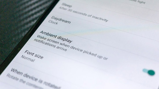 Отметим также, что Nexus 6, согласно коллегам из androidcentral, имеет LED-диод, однако программно его невозможно включить, видимо, Google решила отказаться от LED-уведомлений окончательно в пользу Ambient Display, который, к слову, можно отключить в настройках, перейдя во вкладку «Экран».