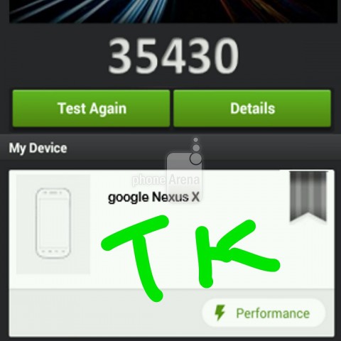 Кроме того, TK Tech News опубликовал скриншоты, благодаря которым мы можем ознакомиться с результатами синтетического тестирования и техническими характеристиками смартфона Nexus X. Спецификации включают в себя 5,9-дюймовый 2K-дисплей, процессор Snapdragon 805 (APQ8084) с тактовой частотой 2,7 ГГц, видеоускоритель Adreno 420, 3 ГБ оперативной памяти, 13,1-мегапиксельная основная камера. В тесте устройство набрало 35 430 очков. Интересно, что смартфон работает на версии Android 5.0. Напомним, ранее не упоминалось, что в названии данной прошивки будет указан её порядковый номер.