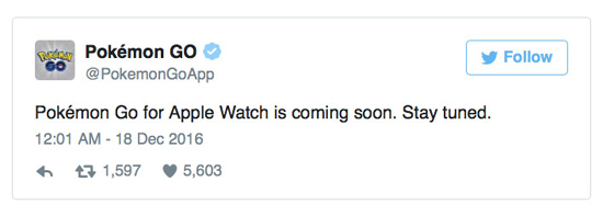 «Pokemon Go для Apple Watch выйдет в ближайшее время. Следите за новостями», — говорится в сообщении Niantic.