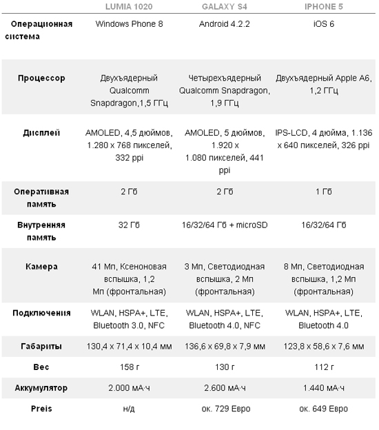 Впрочем, остальные характеристики тоже вполне конкурентоспособны, что ставит Lumia 1020 в один ряд с высококлассными смартфонами от Apple, Samsung и других крупных брендов.