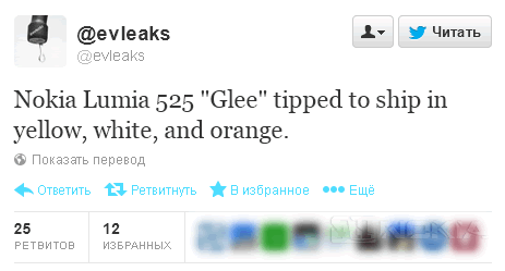 Судя по всему, в скором времени нас ждет еще одна новинка от Nokia - смартфон Lumia 525, упоминание о котором в новостной ленте появляется все чаще. Совсем недавно мы писали о подтверждении его существования самой компанией, а сейчас @evleaks сообщает, что устройство будет выпускаться в корпусе белого, желтого и оранжевого цвета.
