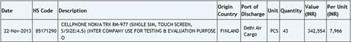 О существовании новинки стало известно благодаря индийскому сайту Zauba, показывающему информацию об импортируемых в страну товарах. Согласно этому ресурсу, в Индию было ввезено 43 смартфона Nokia RM-977, предназначенных «только для тестирования и оценки перспектив».