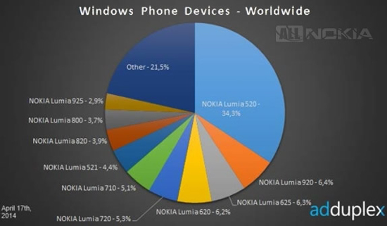 Также AdDuplex отмечает, что в будущем нас ждет несколько моделей Lumia, среди которых числится несколько моделей с 5-дюймовым 1080p-дисплеем.