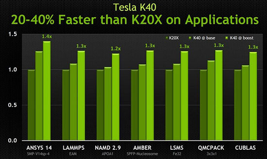 Сравнение скорости Nvidia Tesla K20X и K40 (изображение: chiphell.com).