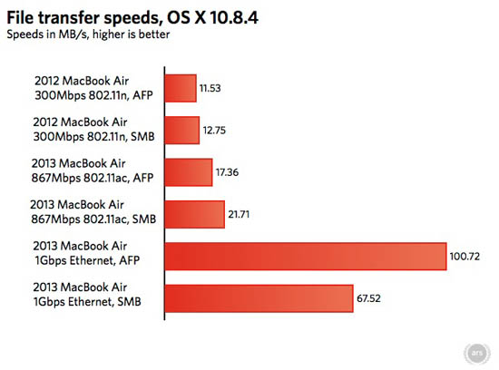 Новое поколение MacBook Air, которое было представлено во время презентации Apple в начале этого месяца, получило поддержку нового стандарта беспроводной связи WiFi 802.11ac, который обеспечивает скорость передачи данных до 1,3 Гбит/с. К сожалению для многих пользователей новых ноутбуков, такая скорость присутствует лишь на «бумаге».