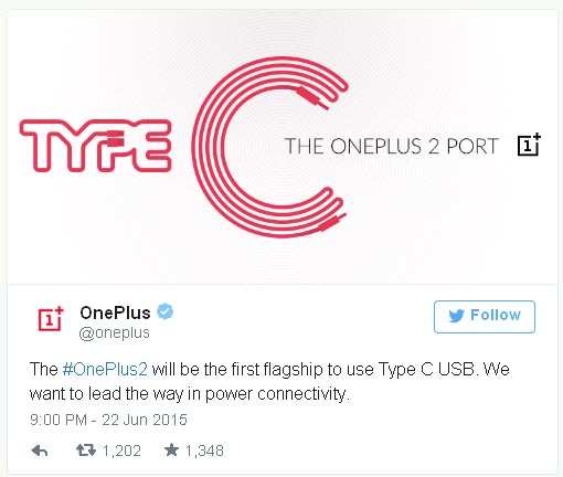Твит красноречиво заявляет, что OnePlus 2 станет первым флагманским смартфоном с портом USB-C. До этого новый стандарт был использован только в планшете от Nokia по имени N1 и ноутбуках. Мы с нетерпением ждем появления USB-C в смартфонах, и OnePlus говорит нам о том, что ждать осталось недолго.