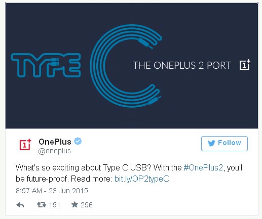 Китайская компания OnePlus продолжает привлекать внимание к своему еще не вышедшему флагману. Победители их двух недавно опубликованных конкурсов смогут первыми увидеть новинку, а нам пока остается довольствоваться тем, что компания сама может рассказать о продукте. Недавно стало известно, что смартфон будет работать на усовершенствованной версии Snapdragon 810, а новый твит от OnePlus говорит о поддержке USB-C.