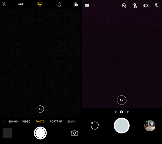 Интерфейс камеры iPhone 7 (слева) и OnePlus 5 (справа)