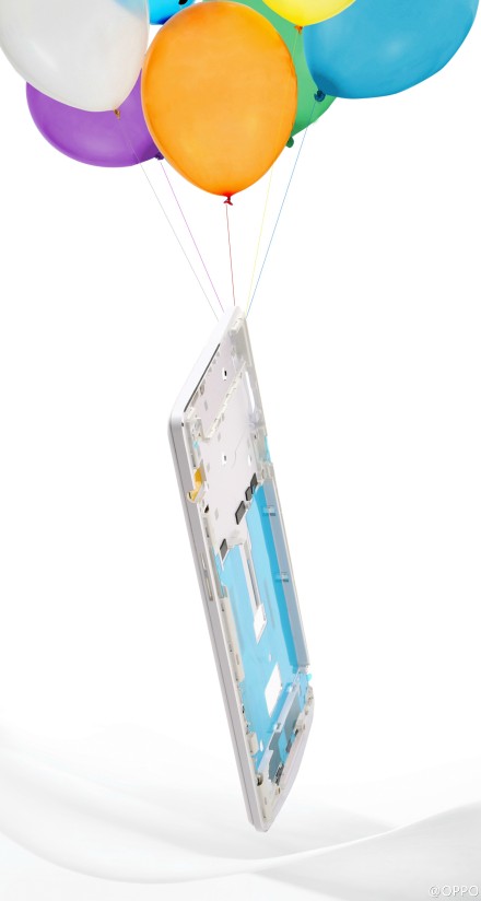 Компания Oppo опубликовала в Weibo картинку с корпусом нового смартфона N3, прикрепленным к воздушным шарам. Подпись к ней подтверждает, что корпус N3 выполнен из алюминиевого сплава с применением лития.