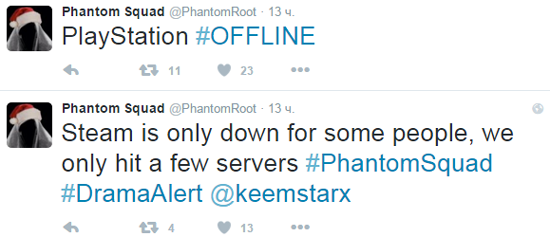 В канун католического Рождества злоумышленники заявили об успешной атаке на серверы Steam и PlayStation. На странице PlayStation в Twitter было опубликовано подтверждение проблем с доступом к играм, приложениям и пр.