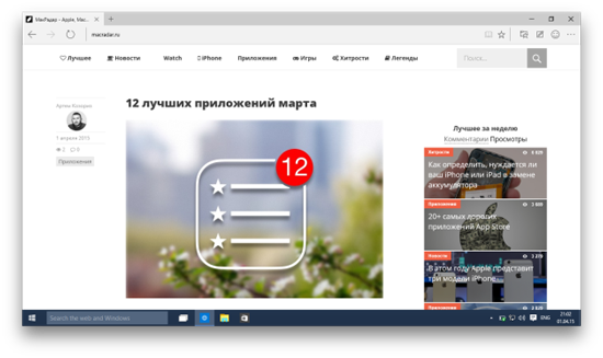 Ну и напоследок о внешнем виде. В целом Project Spartan выглядит вполне прилично, в стиле Windows 8/10. Пространства для контента отвели больше, чем это было в Internet Explorer, однако браузер все равно выглядит как тот же IE, и избавиться от этого ощущения не получается абсолютно никак. К тому же о предке напоминают и такие раздражающие вещи как медленная загрузка страниц (хотя по заверениям Microsoft в новом браузере используется совершенно другой движок) и открытие ссылок в новом отдельном окне вместо вкладки.
