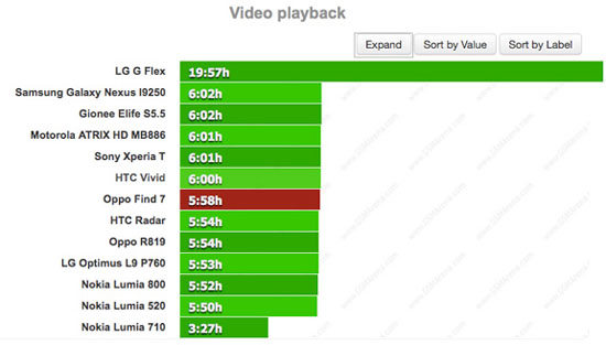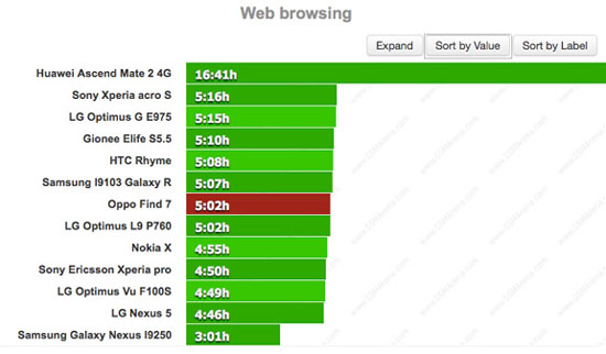 Протестировав флагман с экраном 2560 х 1440 пикселей, эксперты GSMArena сделали неутешительные выводы. Да, смартфон смог продержаться в режиме разговора по 3G внушительные 20 часов без подзарядки. Однако когда речь зашла о работе с дисплеем, итоги оказались значительно хуже, чем у его «Full HD-конкурентов». В режиме просмотра видео Find 7 показал результат 6 часов, а при серфинге в Интернете – всего 5 часов автономной работы.