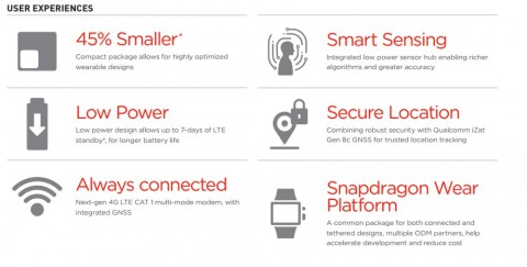 На выставке Computex 2016, которая в эти дни проходит на Тайване, компания Qualcomm представила Snapdragon Wear 1100 - микрочип, разработанный специально для носимых устройств, где в приоритете не производительность, а энергопотребление. Как и более дорогой "старший брат" Snapdragon 2100, процессор получит интегрированный модем Cat. 1 с поддержкой работы в сетях 3G и LTE, а также беспроводной связи Wi-Fi и Bluetooth. По сравнению с предшественником Snapdragon 1100 стал на 45% меньше и получил специальный режим энергосбережения.