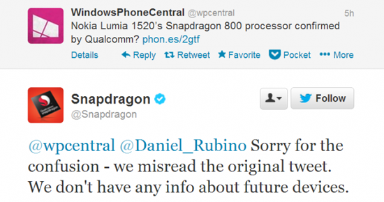 Qualcomm нечаянно подтвердила Snapdragon 800 у фаблета Lumia 1520