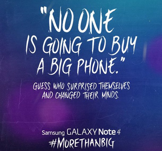 В Samsung отличились хорошей памятью и посредственным чувством юмора. Корейцы припомнили слова Стива Джобса о том, что большие телефоны никто не станет покупать и приписали под цитатой: «Угадайте кто передумал?».