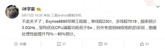 Флагманский процессор Samsung следующего поколения получит более высокую частоту работы. Об этой и еще одной особенности Exynos 8895 сообщил китайский публикатор утечек через социальный сервис Weibo.