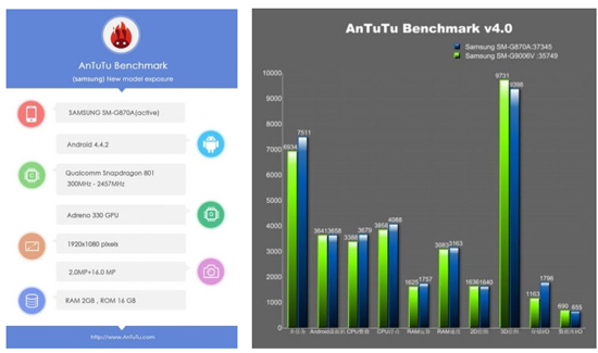 А в целом «активное» устройство будет не хуже флагмана, это подтверждают результаты популярного синтетического теста AnTuTu, где и засветился GALAXY S5 Active.