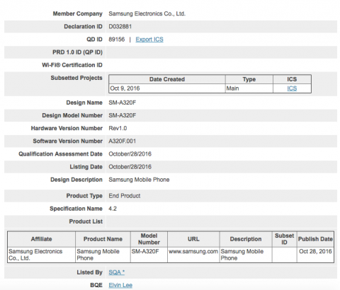 Samsung Galaxy A3 (2017) близится к релизу