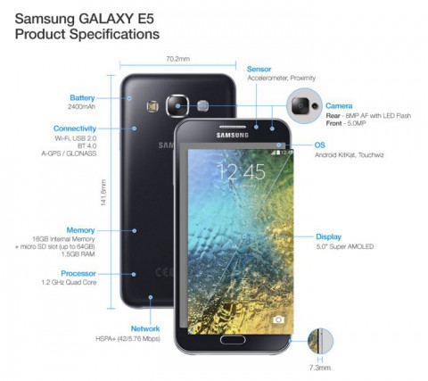 Технические характеристики Galaxy E5: