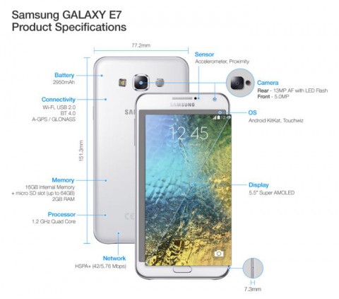 Технические характеристики Galaxy E7: