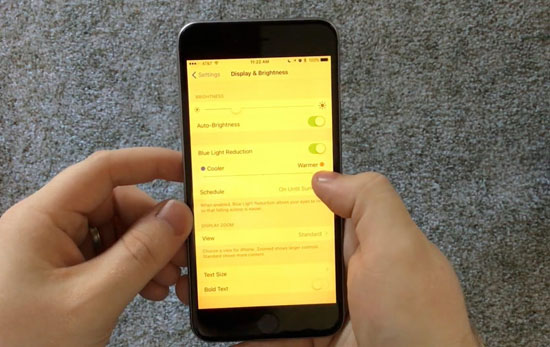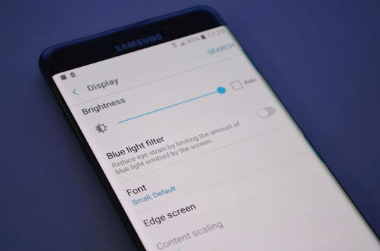 Специальный экранный режим работы «корейца» активируется в настройках. Одним нажатием владелец Galaxy Note 7 может включить фильтр голубого цвета. При этом в отличие от iPhone, пользователь не может отрегулировать оттенки цветов дисплея, чтобы снизить нагрузку на глаза.