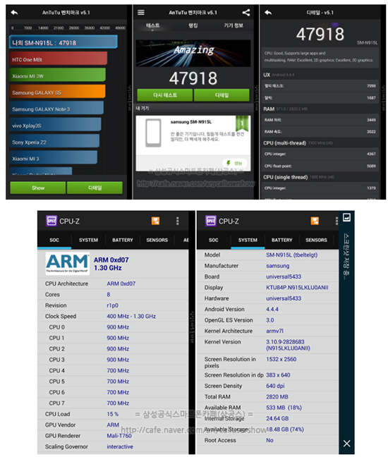 Когда Samsung представила Galaxy Note Edge, всем было интересно, окажется ли специальная версия топового смартпэда Note 4 столь же производительной, как это было с предыдущими флагманами Note. Первые замеры в бенчмарках оказались неожиданно разочаровывающими: Note 4 и Note Edge с процессором Snapdragon 805 не сумели превзойти большинство флагманов этого года. Однако сегодня в базах данных популярного AnTuTu появились результаты тестирования Samsung Galaxy Note Edge на базе восьмиядерного процессора Exynos 5433, который сконфигурирован по принципу big.LITTLE и оснащён мощным графическим ускорителем Mali-T760. Эта модель показала себя гораздо лучше, нежели предшественники, набрав в тесте впечатляющие 47 918 очков.